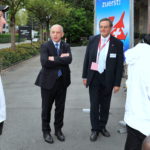 Bundesrat Ueli Maurer nahm sich am anschliessenden Apéro während über einer Stunde ausführlich Zeit, um den Kontakt zur Zuger Bevölkerung zu pflegen. Maurer erwies sich als ausgesprochen guter Zuhörer, und durfte auch viele Komplimente zu seiner Arbeit im Bundeshaus entgegennehmen. Der volkstümliche Bundesrat fühlte sich offensichtlich pudelwohl in der Menge. Trotz seines hohen Amtes und der damit verbundenen enormen Belastung hat er seine Gabe bewahren können, auf jedermann zuzugehen, ihm zuzuhören und ganz normal mit den Leuten zu diskutieren, als wäre er der Nachbar.