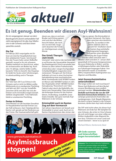 - 18.06.2025 Nein zu einer Asylunterkunft in Baar!